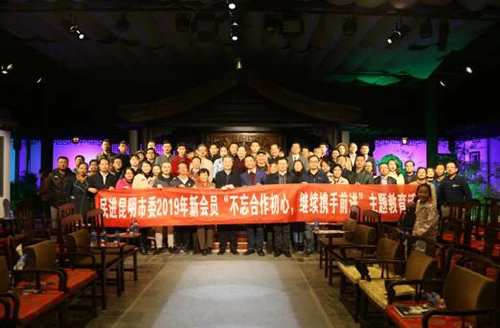 2019年11月8日,民进昆明市委组织新会员开展“不忘合作初心,继续携手前进”主题教育活动,活动以会史会章宣讲、优秀会员“我与民进”主题演讲、新会员感言分享和观看爱国主义教育剧目《联大往事》等环节组成。在活动过程中,全国人大常委会委员、民进中央副主席王刚率队的民进中央“不忘合作初心,继续携手前进”主题教育活动调研组一行亲临活动现场并作了指导。