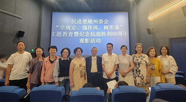 为深入推进作风建设,传承弘扬伟大抗战精神,8月27日下午,民进楚雄委会联合农工党楚雄州委会、民革楚雄州委会,共同开展“学规定、强作风、树形象”主题教育暨纪念抗战胜利80周年观影活动。20余名会员参与此次活动。