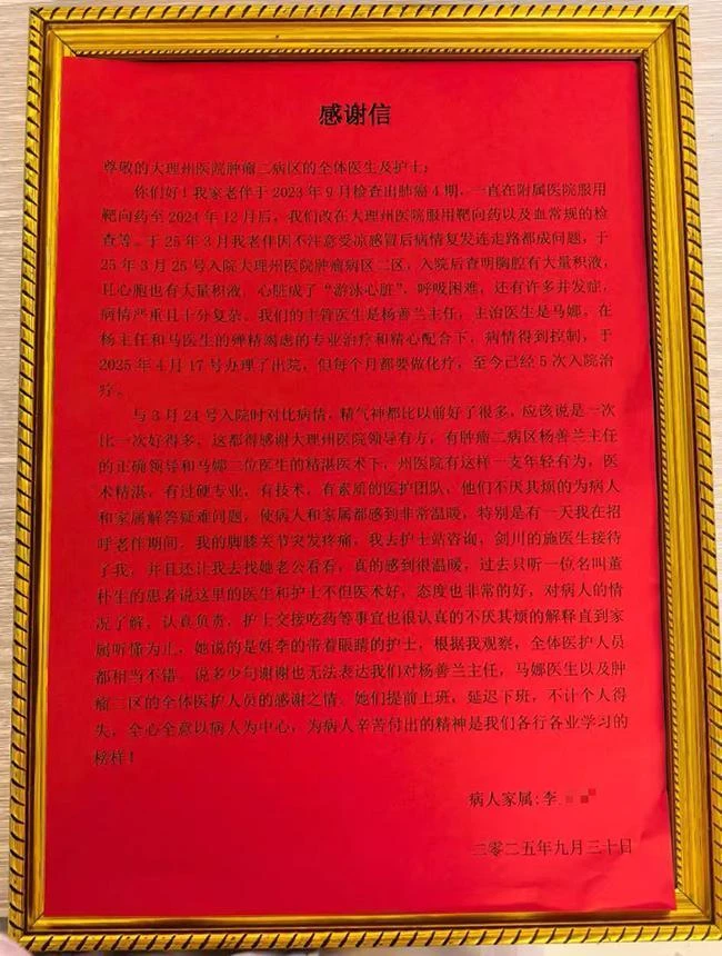 自1997年踏入大理州医院内科,杨善兰已在医疗战线坚守了二十八个春秋。其中,在充满挑战与压力的肿瘤防治领域,她已深耕二十五载。选择肿瘤科这个“高压”领域,源于她对未知的探索精神,更源于内心深处对患者的深切同情。一个来自南涧山区、身患脊索瘤却坚强乐观的9岁男孩,以及早期肿瘤治疗手段有限、患者面临重重困境的现实,深深触动了她,坚定了她投身肿瘤事业、为更多患者点燃生命之光的信念。