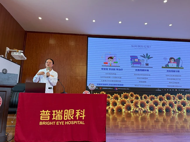 在红旗小学教育集团布新校区的报告厅里,来自昆明普瑞眼科医院视光与儿童眼病专科的魏秀芬医生,用生动有趣的语言、直观形象的案例,结合青少年视力发育特点,围绕 “近视是如何形成的”“日常学习生活中如何保护视力”“近视后该如何科学应对” 等核心问题展开讲解。魏秀芬医生通过图文结合的方式,直观展示了近视对生活、学习的影响,并针对孩子们常见的不良用眼习惯,如长时间近距离看书、沉迷电子产品、读写姿势不规范等,逐一给出纠正建议,同时强调 “每天保证 2 小时以上户外活动”“定期进行视力检查” 等预防近视的关键措施,内容实用且易于理解。