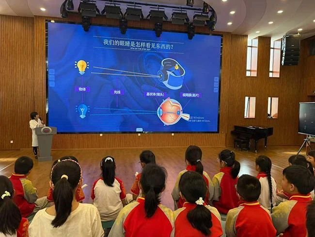 在讲解过程中,杨槐主任围绕“近视是如何形成的”“近视的危害有哪些”“如何科学预防近视”三大核心内容展开详细阐述。她借助生动的图片、直观的案例,向孩子们科普了眼球的基本结构,分析了长时间使用电子产品、读写姿势不规范、户外活动不足等导致近视的主要因素,并着重强调了近视不仅会影响日常生活和学习,还可能对未来职业选择造成限制,让孩子们深刻认识到保护视力的重要性。