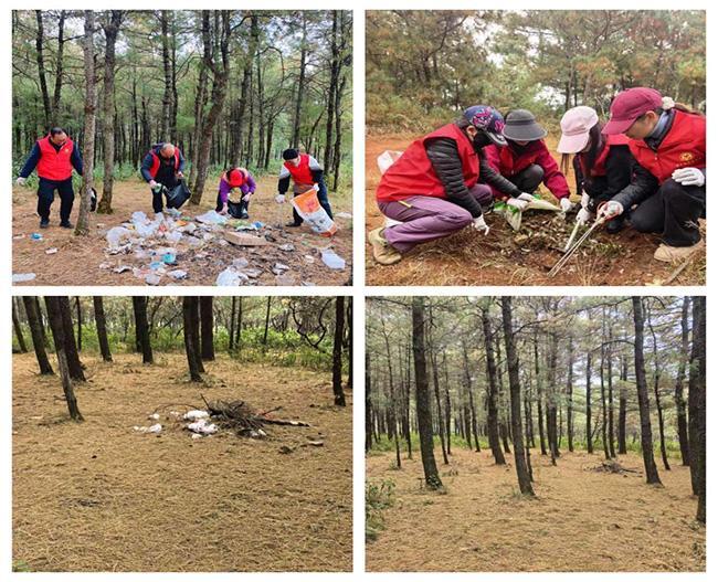 活动中,志愿者们身穿新时代志愿服务服装,携带垃圾袋、夹子、火钳、锄头等工具,沿山林之间分组行动,重点对游客尤其是山林聚餐人员丢弃的一次性餐盒、啤酒瓶、酸奶盒、食品包装袋、烟头等垃圾进行全面清理,经过2个多小时的团结协作,共清理各类垃圾15袋约60多公斤,集中转运后交由专业机构分类处理。