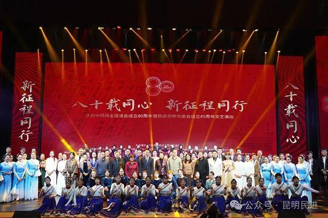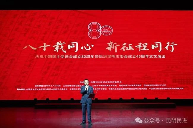 11月29日,民进昆明市委会在市工人文化宫成功举办“八十载同心·新征程同行”庆祝中国民主促进会成立80周年暨民进昆明市委会成立45周年文艺演出。民进中央副主席、云南省委会主委李玛琳,省委会原主委罗黎辉、专职副主委金振辉、秘书长马孟杰,中共昆明市委统战部、市委宣传部等部门,各民主党派市委会,市工商联、有关人民团体、各区委及区委统战部领导出席活动。民进云南省委会副主委、昆明市委会主委王键出席并致辞。