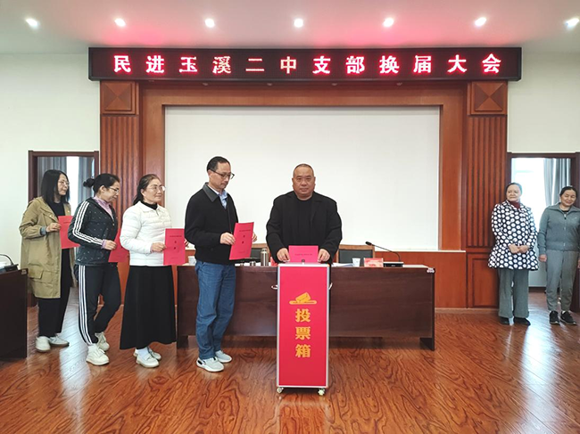 10月25日,民进玉溪二中支部召开支部换届大会,拉开了民进玉溪市委会基层组织换届工作大幕。玉溪市人大常委会副主任、民进玉溪市委会主委何雪峰出席会议并讲话。民进玉溪市委会内部监督委员会委员施本义参会。