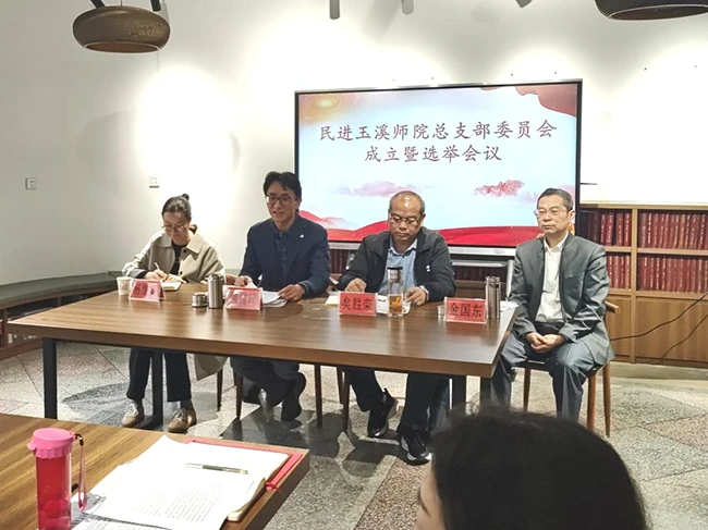 11月1日,民进玉溪师院总支部成立暨选举会议召开。玉溪市人大常委会副主任、民进玉溪市委会主委何雪峰出席会议并讲话。民进玉溪市委会专职副主委矣胜荣、副主委伍贤学,玉溪师范学院党委统战部办公室主任杨继媛参会。