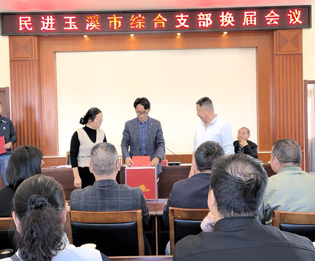11月13日,民进玉溪市综合支部召开换届会议。玉溪市人大常委会副主任、民进玉溪市委会主委何雪峰出席会议并讲话,民进玉溪市委会专职副主委矣胜荣参会。