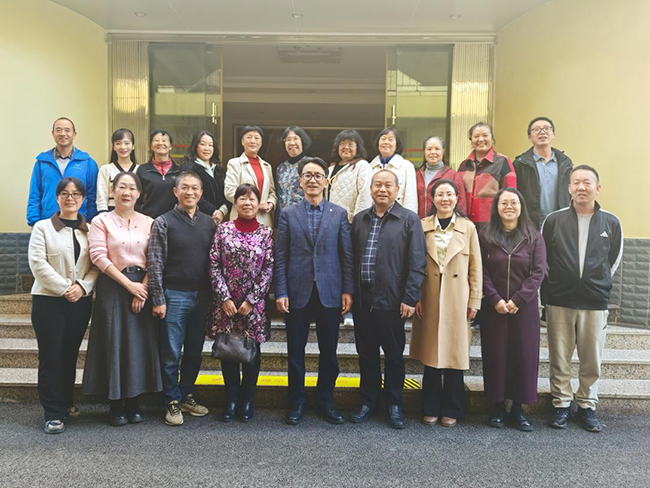 (何雪峰主委、矣胜荣副主委与四中支部新一届委员会班子合影)