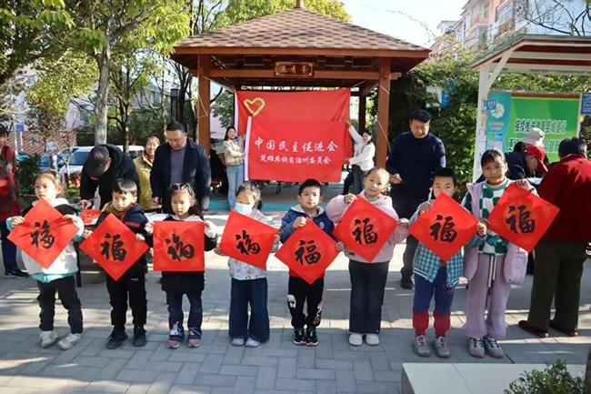 民进小教支部“迎新年 送祝福”春联书写活动走进灵秀小区