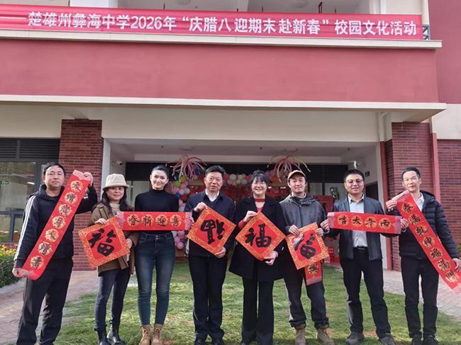 为深入践行“五育并举”育人方针,推动中华优秀传统文化在校园落地生根,深化校家社协同育人机制,1月25日民进楚雄州委会应邀走进楚雄彝海高级中学,参与学校“五育融情承文脉 家校同心赴新程”校园文化活动,开展教育教学调研交流,并带来民进特色公益品牌活动“春联万家”,以翰墨书香为校园添彩,为师生送上新春美好祝福。