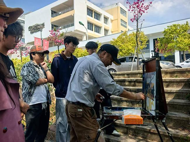 随后,开明画院的艺术家们现场展开教学示范,展示国画、油画、水彩等多种艺术表现形式。老师们落笔从容、技法娴熟。边作画边将专业的绘画技巧与艺术理念告诉学生们,让在场学生近距离感受书画艺术的独特魅力。活动现场组织有序、氛围浓厚,同学们认真观摩、积极互动,在沉浸式体验中提升审美情趣与绘画能力。