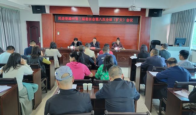 近日,民进楚雄州委会召开第三届八次全委(扩大)会议暨第三届委员会领导班子和班子成员届末述职和民主评议会议。民进楚雄州委会主委蒲涌、副主委罗丽娜、第三届委员会委员、基层组织主委、专委会主任、老会员和会员代表参会。中共楚雄州委统战部相关负责同志应邀列席会议。