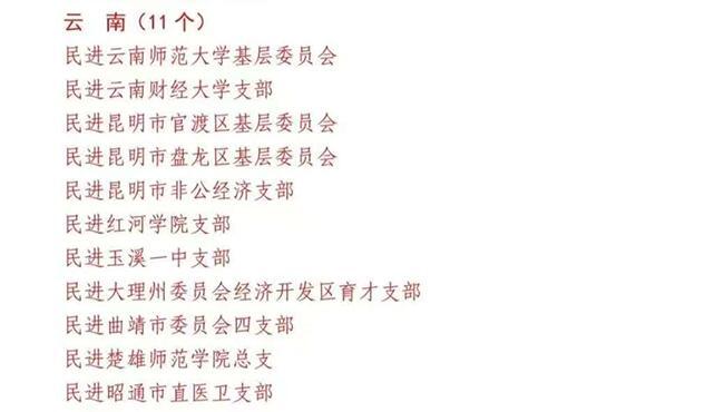 其中民进大理州委会经济开发区育才支部荣获“民进全国先进基层组织”称号;民进大理州委会副主委、大理大学教师教育学院教授杨立红荣获“民进全国‘双岗建功’优秀会员”称号。