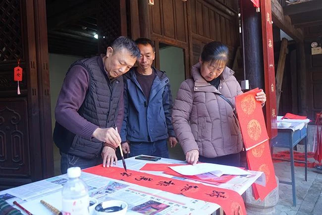 活动现场暖意融融、墨香四溢。书画家们齐聚一堂,展纸挥毫,将辞旧迎新的美好祝愿倾注笔端。一副副寓意吉祥、笔力遒劲的春联,一个个饱满喜庆的“福”字跃然纸上,既有丙午马年昂扬奋进的时代寄望,也饱含对家园热土的深情祝福。