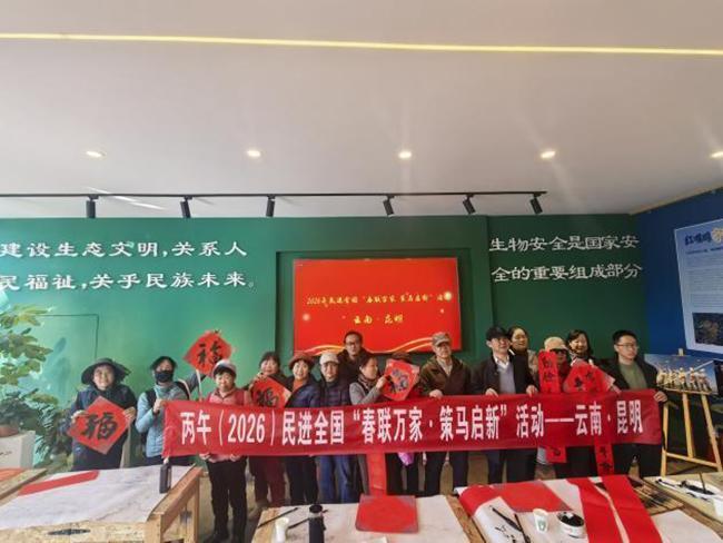 新春将至,墨香溢春城。2026年1月14日,民进昆明市委会在昆明市五华区翠湖生态文明展厅举办丙午年(2026)民进全国“春联万家 策马启新”活动。民进市委会积极响应民进中央春联万家活动号召,以2026年“社会服务主题年”建设为重要抓手,将传统文化传承与为民服务宗旨深度融合,为昆明市民送上了饱含暖意的新春祝福。