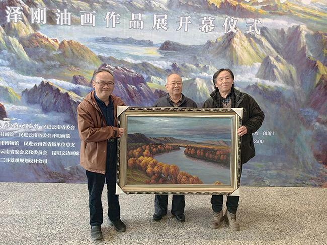 3月13日,由云南省文史研究馆与民进云南省委会共同指导的“同心筑梦 艺韵滇风——傅泽刚油画展”在昆明市博物馆开幕。云南省人大常委会原常务副主任晏友琼,省政府原副省长梁公卿等领导及各界嘉宾出席,省政协副秘书长、民进云南省委会专职副主委金振辉致辞,傅泽刚致答谢词并向市博物馆捐赠作品,晏友琼宣布画展开幕,省文史研究馆副馆长周玲主持开幕式。