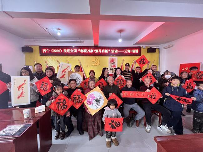 为弘扬中华优秀传统文化,进一步发挥民进文化界别优势,履行民进社会服务职责,为基层群众送去喜庆祥和的新春文化氛围,1月26日至30日,民进昭通市委会组织昭通民进开明画院书画家们到昭阳区太平街道北馨佳园社区、黄竹林社区,北闸镇同源社区、永丰镇开展了丙午(2026)民进全国“春联万家·策马启新”活动,为基层群众书写春联、福字,以笔墨传递新春祝福。